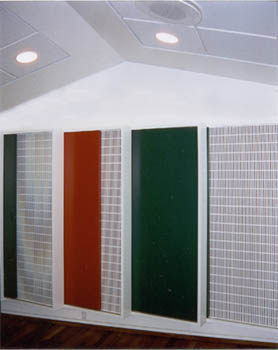 Den variable akustik er her lavet med skydedørssystem, som har den klare fordel, at de ikke tager plads ind i rummet (ting kan stilles helt ud til væggen).